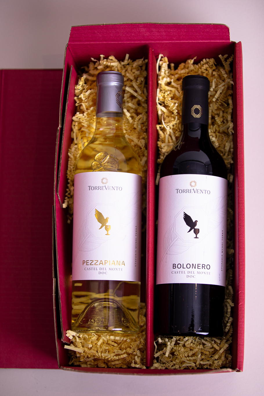 Beide stammen von Cantine Torrevento in Corato, beide tragen die Castel del Monte DOC — und zusammen erzählen sie genau die Geschichte, die Apulien so besonders macht: Tiefe und Leichtigkeit in einem.
