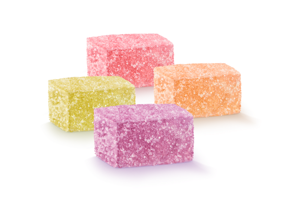 Zutaten: Süßstoffe: Maltit, Erythrit, Xylit, Isomalt. Ätherisches Orangen- und Zitronenöl, natürliche Aromastoffe. Farbstoffe: Curcumin, Anthocyane. Geliermittel: Pektin. Säuerungsmittel: Zitronensäure. Kann Milch, Schalenfrüchte und Soja enthalten. Kann bei übermäßigem Verzehr abführend wirken.