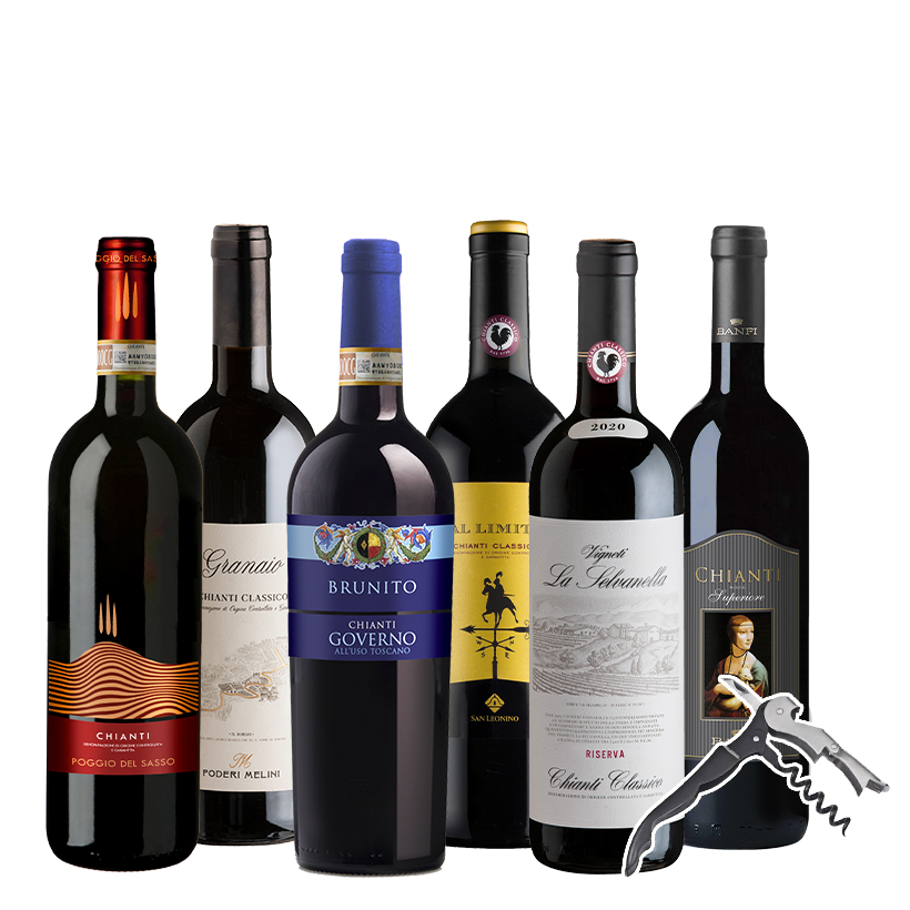 Entdecken Sie Chianti in seiner ganzen Tiefe – vom frischen Chianti DOCG bis zur gereiften Riserva. Dieses Probierpaket vereint sechs Spitzenweine aus der Toskana, darunter Classico, Superiore, Governo und Riserva – ideal für eine vertikale Verkostung und ein besseres Verständnis der facettenreichen Chianti-Welt. Als Geschenk legen wir ein hochwertiges Kellnermesser gratis bei.