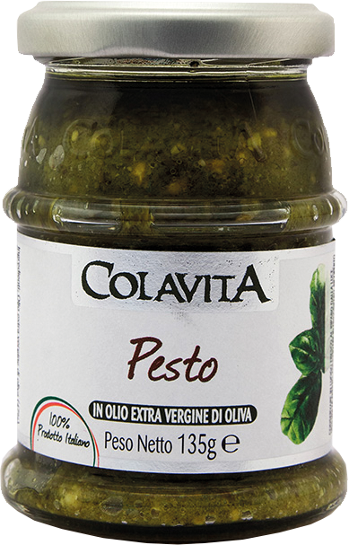 Zutaten: Natives Olivenöl Extra (47 %), Basilikum (28%), Cashewnüsse, Kartoffelflokken, Parmigiano Reggiano Käse (Milch, Salz, Lab), Salz Dextrose, Pinienkerne, Knoblauch, Milchsäure, Säureregler