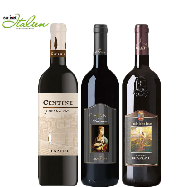 2 toskanische Klassiker – Chianit Superiore sowie der herausragende Brunello di Montalcino – sowie der innovative Centine Rosso.